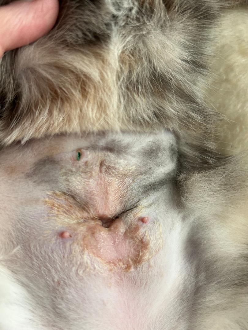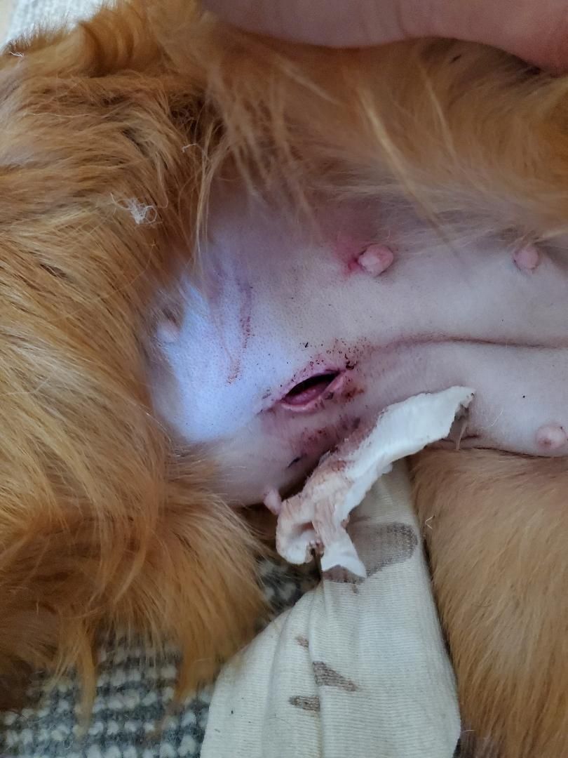 It is important that the e-collar stays around the pet’s neck for at least 10-14 days. Check on the incision daily. No licking, rubbing, or scratching of the incision. Keep other furry friends from licking the incision.